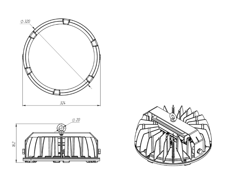 Габаритные размеры светильника, мм Ø320x162