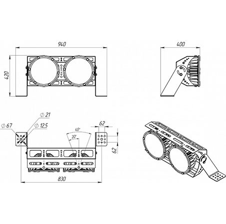 | Габаритные размеры светильника, мм | 420x400x940 |